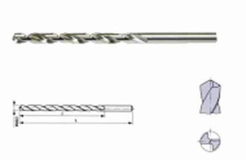 Vrták s válcovou stopkou dlouhý vybrušovaný 06,60 mm HSS PN 2916 DIN 340 RN Výkonné vrtáky doporučené pro vrtání děr s větší hloubkou v součástkách z nelegované i legované oceli, ocelolitiny do pevnosti 900N/mm2, šedé, temperované i tvárné litiny, spékané oceli, hliníkové slitiny s krátkou třískou, bronzu, houževnaté mosazi. Způsob ostření: Form N - podbroušená kuželová plocha. Rozměrová řada: 0,90 - 20 mm ČSN: 2916, DIN: 340 RN