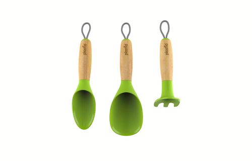 Nástroje pro kultivaci, sázení, přesazování, i šetřování rostlin v zahradě i na balkoně. Rýček se sázecí drážkou využijete při výsadbě semínek do záhonů, lopatku při přesazování či výsadbě rostlin, hrabičky pak pro provzdušnění půdy v květináčích či úpravě záhonů. Díky kulatému tvaru je nářadí bezpečné i pro žížaly, hodí se tedy i jako doplněk k vermikompostéru. Madla jsou vyrobená ze dřeva s certifkátem FSC. Barva: zelená Výška: 36,5 cm Šířka: 19,5 cm Hloubka: 10 cm