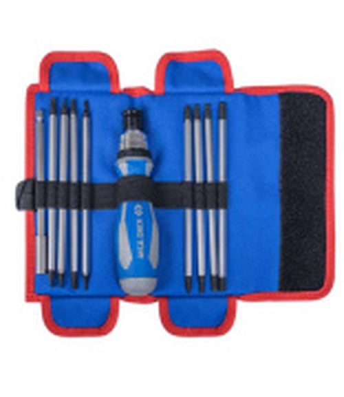 Kompaktní ráčnový šroubovák King Tony s teleskopickým držákem bitů 1/4" a dvoustrannými bity v textilním pouzdře 16 Ks ráčnový šroubovák s ergonomickou rukojetí a maximálním krouticím momentem 45 Nm pomocí teleskopického držáku bitů o max. délce 135 mm je ráčna vhodná pro práci v těžko dostupných místech integrovaný přepínač levého a pravého chodu jemný chod díky zubatce se 45 zuby integované úložiště bitů v rukojeti ráčny obsahuje 6 ks součástí sady dvoustranné prodloužené bity přesné kalené hroty bitů zaručují bezpečnou montáž, ochranu šroubů a dlouhou životnost bitu leštění a následné pochromování bitů zvyšuje odolnost proti oděru a chrání před korozí Obsah balení: ráčnový šroubovák teleskopický držák bitů 1/4" křížový bit PH1 křížový bit PH2 křížový bit PZ2 plochý bit SL 4.0 x 0.5 plochý bit SL 5.5 x 0.8 plochý bit SL 6.5 x 1.2 křížový bit PH1 + PH2 x 175 mm plochý bit 4.0 + 6.0 x 175 mm plochý bit 5.0 + 7.0 x 175 mm torx T10 + T15 x 175 mm torx T20 + T25 x 175 mm IMBUS s kuličkou B4 + IMBUS 4 x 175 mm IMBUS s kuličkou B5 + IMBUS 5 x 175 mm IMBUS s kuličkou B6 + IMBUS 6 x 175 mm textilní pouzdro Společnost KING TONY TOOLS CO.,LTD vyrábí profesionální nářadí od roku 1984 s prodejem ve 130 zemích světa a patří mezi světovou špičku. Veškeré výrobky odpovídají evropským normám DIN a americkým normám ANSI. Ruční nářadí při destruktivních zkouškách v krutu standardně překračuje požadavky normy DIN o 30 % a pneumatické rázové nářadí s příslušenstvím až o 50 %. Získané certifikáty kvality ISO 9002, ISO 9001 a ISO 14001 potvrzují profesionální a odpovědný přístup při výrobě a provozu společnosti.